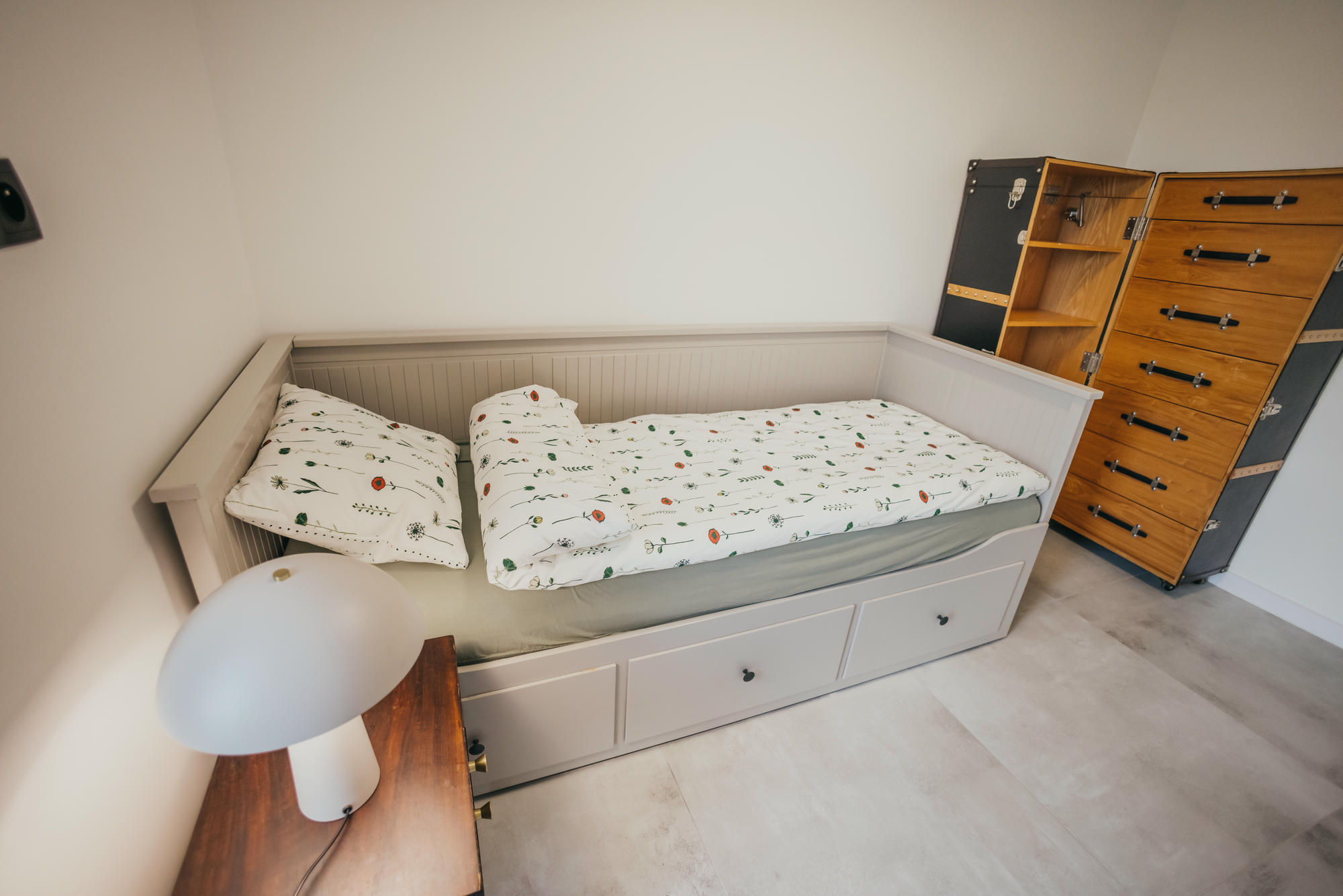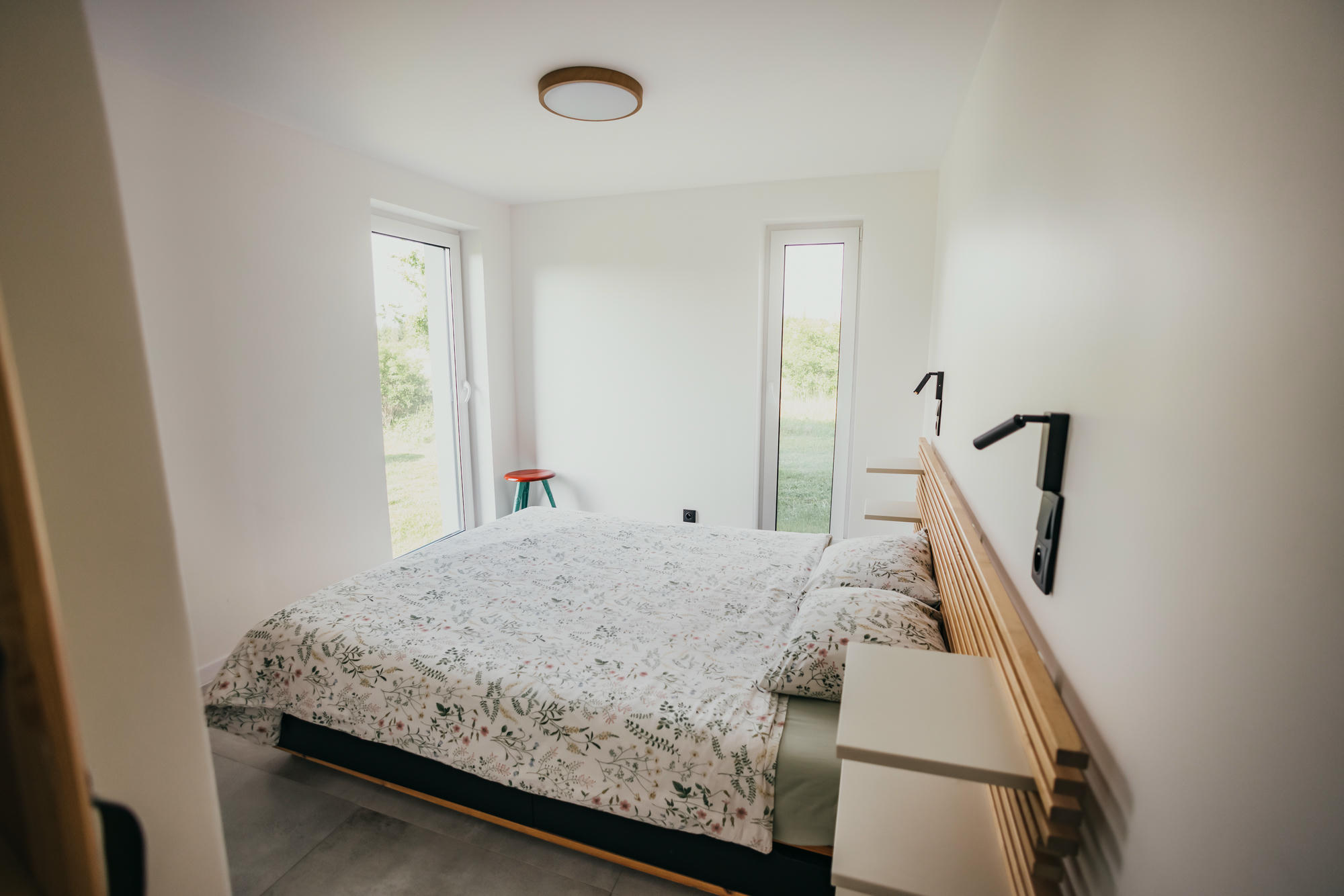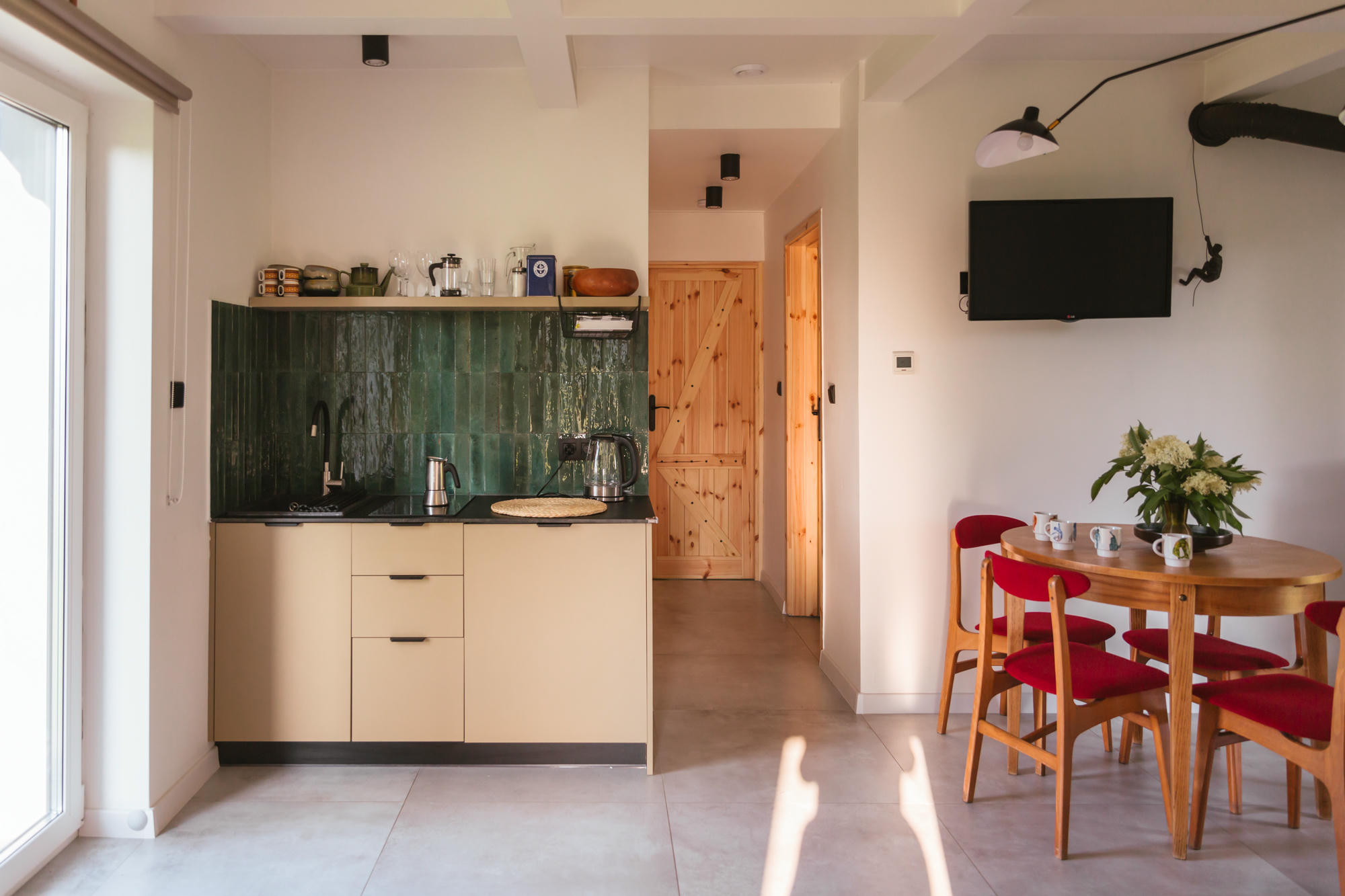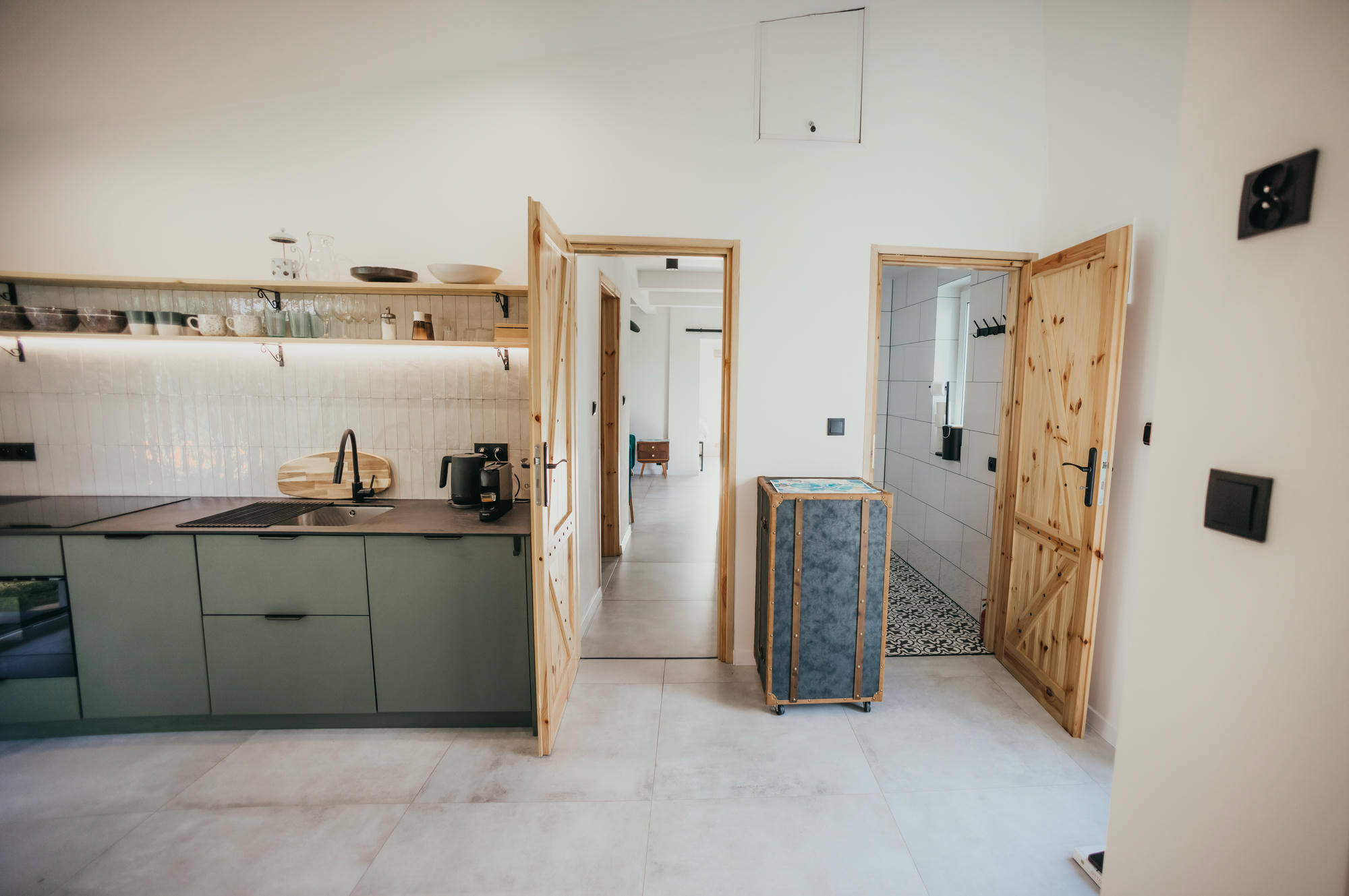 Wnętrza domu urzekają przestronnością i przytulnym stylem. Znajdziesz tu kuchnię wyposażoną we wszystko, co potrzebne do wspólnego gotowania, salon zapraszający do długich rozmów przy winie i nowoczesne łazienki, które zapewnią wygodę nawet najbardziej wymagającym Gościom. Każdy detal został przemyślany z myślą o harmonii – od stylowych mebli po subtelne akcenty, które nadają całości domowego charakteru.
