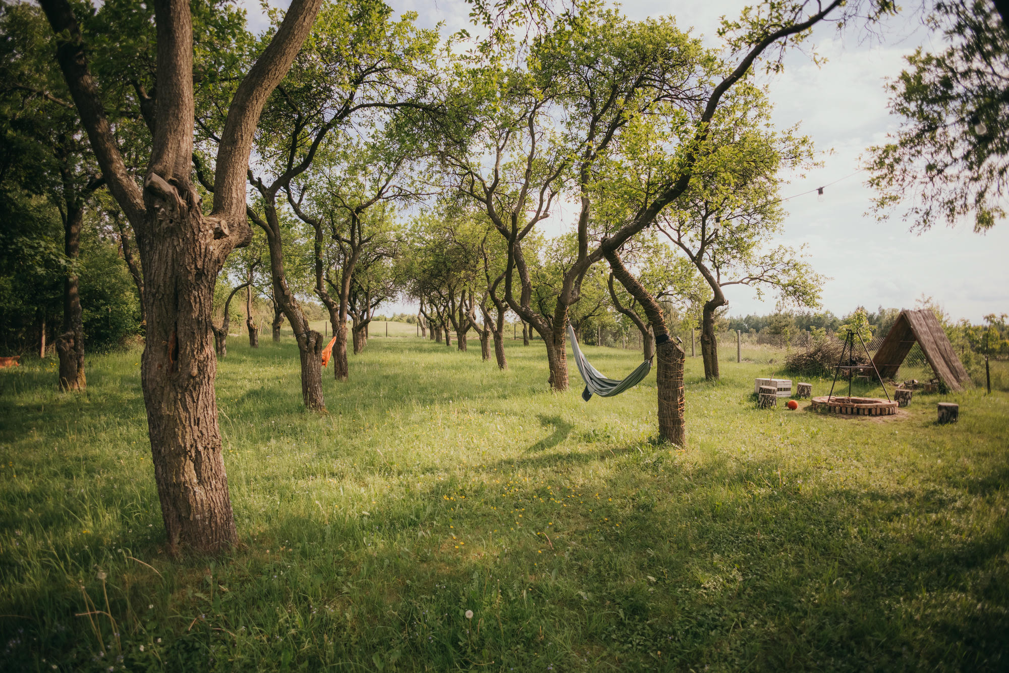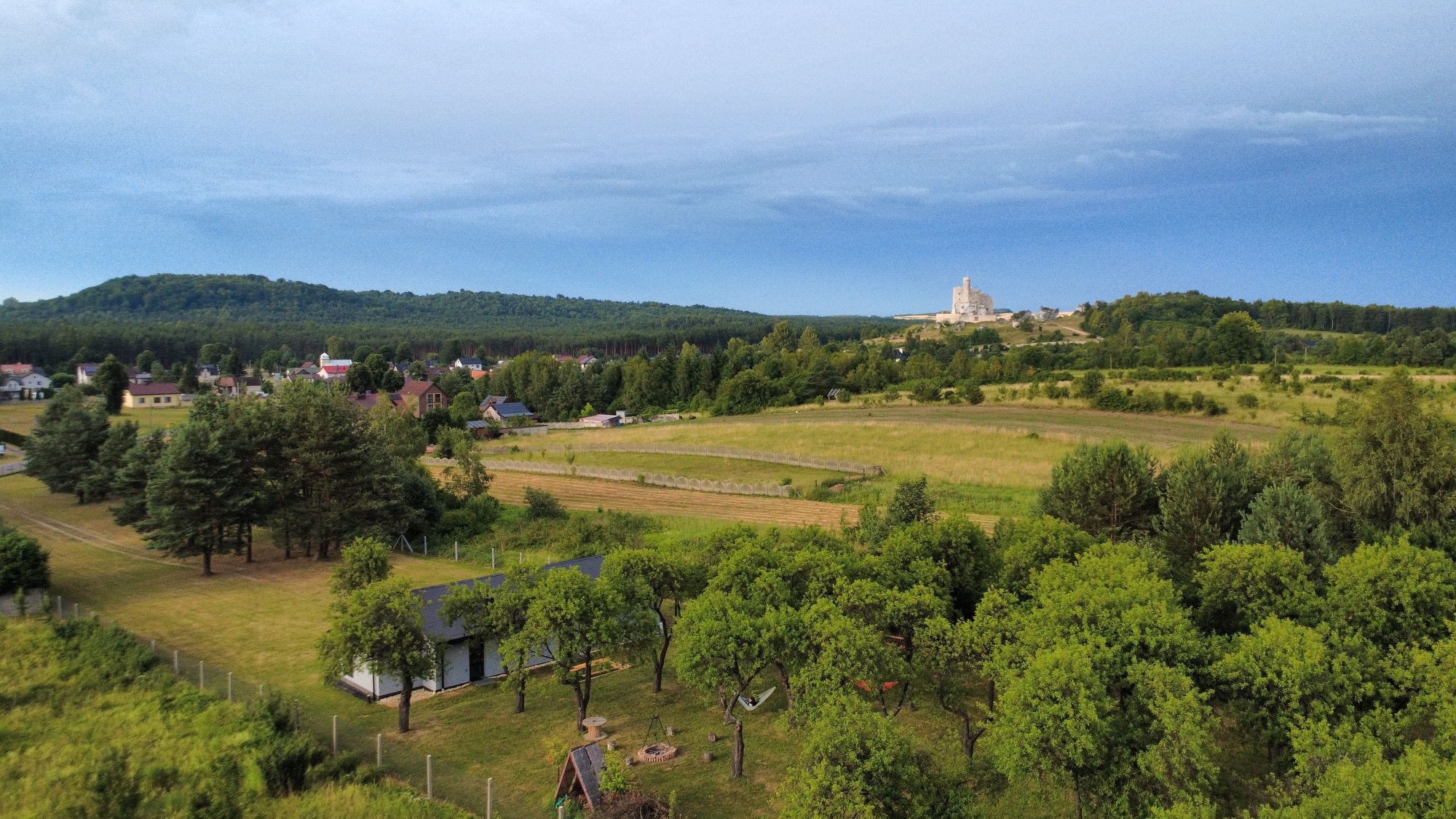 Ogromną wartością Śliwkowego Sadu jest przestrzeń wokół. Nasz dom otacza rozległy, prywatny ogrodzony teren bez sąsiadów, na którym króluje cisza, śpiew ptaków i zapach łąki kwietnej. Poranna kawa smakuje najlepiej na tarasie, a popołudniowe lenistwo nabiera uroku na leżaku czy w hamaku z widokiem na zamki Mirów i Bobolice. Dzieci mogą biegać do woli, psy cieszyć się wolnością, a dorośli odnaleźć ukojenie w kontakcie z naturą.